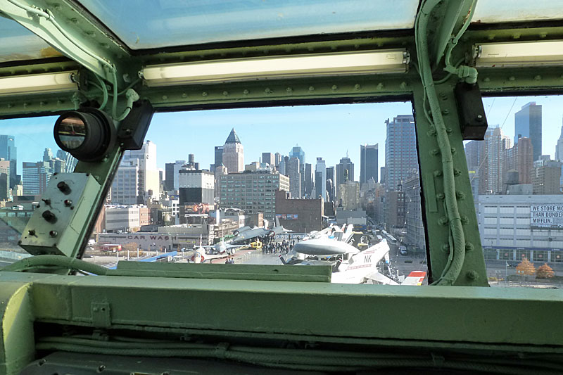 An amazing view of the New York Skyline from the Bridge of the USS Intrepid