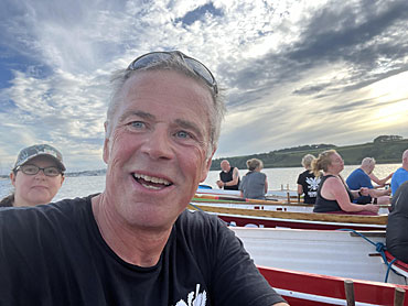 One of my retirement hobbies is gig rowing. Helen has the bug too and we row with Falmouth Pilot Gig Club two or three times a week. It is a great team-based activity that keeps us fit and provides something of a social outlet too. The most serious and able rowers aim for the World Championships in Scilly each May, but we restrict our racing to the summer Friday night fun racing. This involves up to 12 boats from clubs across Cornwall meeting up off Falmouth for three or four races, followed by rafting up together out on the ‘oggin’ for a chat over a beer. We then row back into Falmouth and head for the chippy followed by the pub.