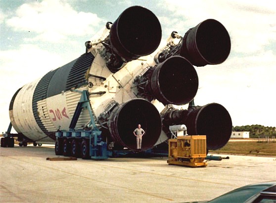 My fellow team member, Lionel Earnden, posing with the Saturn V