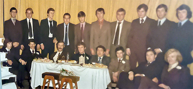 Just had one of those moments on recent of your mail; The occasion is my wedding day in Leeds, 3 Nov 1973. In the photo are a few Movers (some from A-shift traffic at BZN) and Suppliers, just as TG18 split. Who do we recognise and where are they now? I do know that Alan (Geordie) Pattinson died some years ago, but the rest? Oh and there are a number of red herrings (civilians) there too!