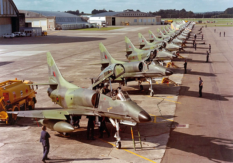 1). Royal New Zealand Air Force Ohakea, in the late 1980s. This was the RNZAF's principal fighter base and not a Hardened Aircraft Shelter in sight! It was like stepping back in time. A rudimentary fence line, no sangers, bright yellow Ground Support Equipment, Land Rovers etc and Fire Engine Red rescue vehicles. Not a drop of IRR Green anywhere. All the jets were lined up in neat rows on the flightline. I was there for two days/nights on an exercise recce, scoping it out as a possible airhead. Lunch in the Officers' Mess was a leisurely affair and afternoon tea was served from 4.00pm.