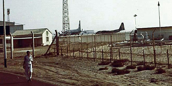 December 1967 - Anderson AFB on Guam. I was on my first UKMAMS task. We had an overnight stay here. The Vietnam war was ongoing and this was a USAF base that was being used in support of that. Whilst being driven from our aircraft to our accommodation we passed along the flight line and revetments and here is where we lost count of the B52's that were parked wing-tip to wing-tip, each with an armed guard. It was some sight but I did however read later that in 1972 there were 150 of these aircraft operating from there.