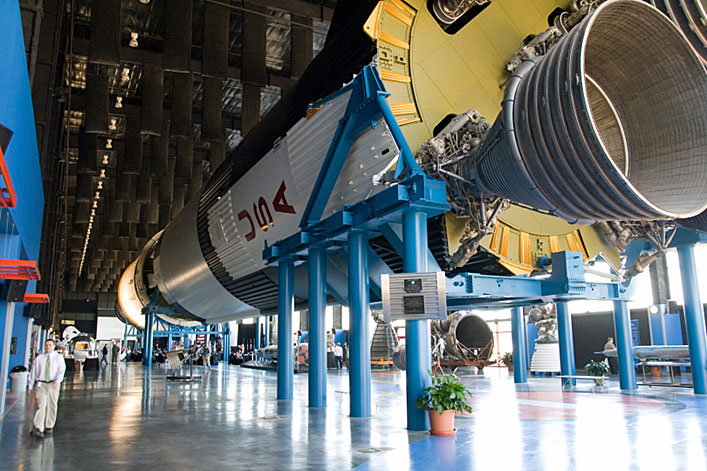 The same Saturn V rocket we climbed over is now displayed in the Space Complex