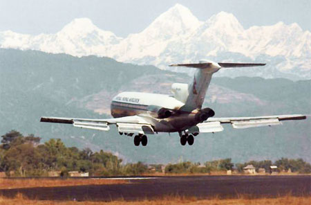 Royal Nepal Airlines B727 arriving in KTM from HKG