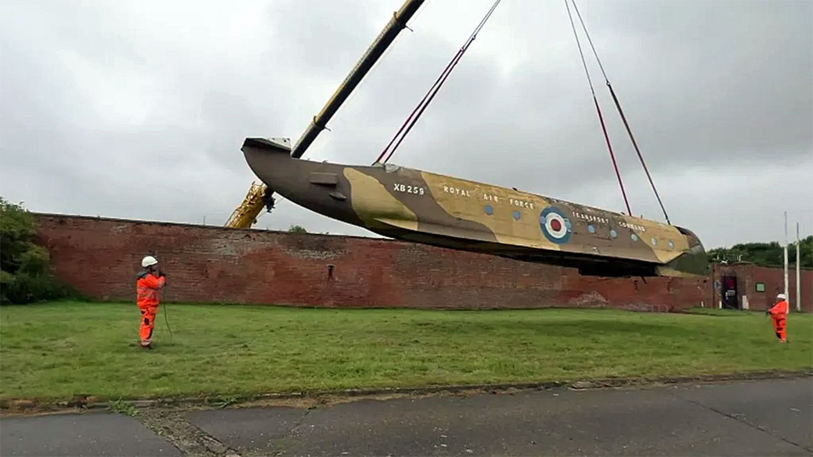 The fuselage of the aeroplane was so big it could not fit through the gates at Fort Paull in Hull, where it was previously housed. A crane had to be used to lift it over the walls before it could be transported to Carlisle.