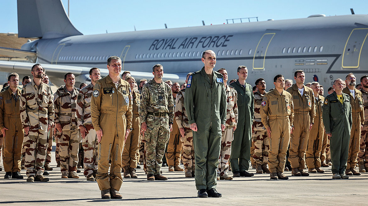 The deployment phase of this series of exercises was known as Exercise Griffin Strike 24. Six Typhoons from RAF Coningsby based 11 (Fighter) Squadron with the Voyager, and A400M aircraft from the RAF Brize Norton based Air Mobility Force, first joined up with FASF’s Rafale and Phenix aircraft at Istres Airbase in southern France.