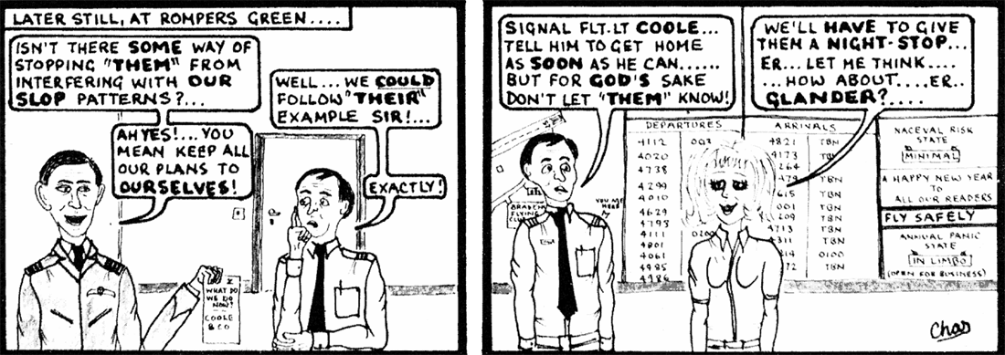 Loads of spares and the other paraphernalia to keep the detachment going were consolidated at either Brize Norton for Britannia schedules or Lyneham for C130 schedules, both of which were fortnightly. A logistics recipe for disaster, as readers will imagine. But, as that Irish comedian Jiminy Cricket used to say, "...and there's more!"