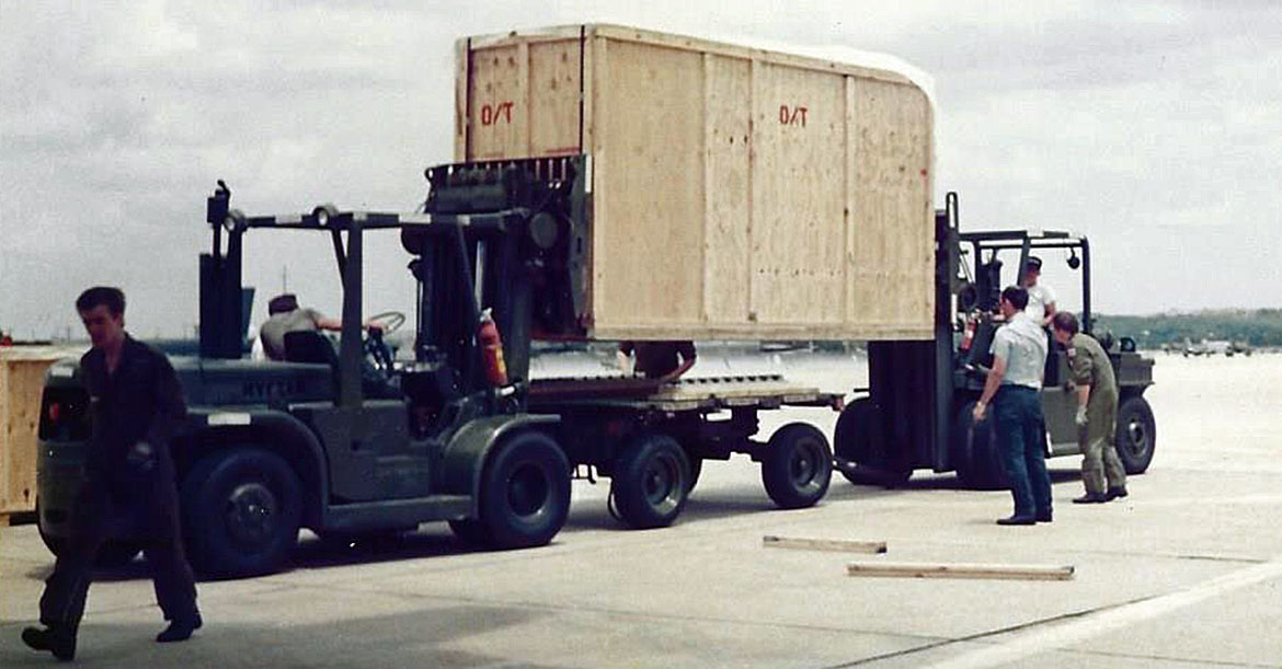 A few years later I was back at Lyneham as a traffic team leader and we met a C130 with a RB211 on it. It turned out that JATE had modified the TDS to remove the dunnage and put in place a specially developed cradle that fitted underneath the end of the fuselage, therefore stopping any deflection in ramp hinge area. So there it is, my claim to Mover's Ingenuity!