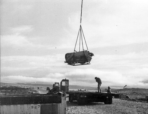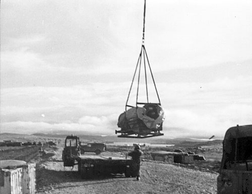 The first is a Marine Olympus engine from HMS Brilliant in 1983 - we dropped it directly onto a double pallet on the Condec down at Black Eagle, Stanley, in the Falklands, as we could not lift it with the Henleys - it was airbridged back to ASI that evening.