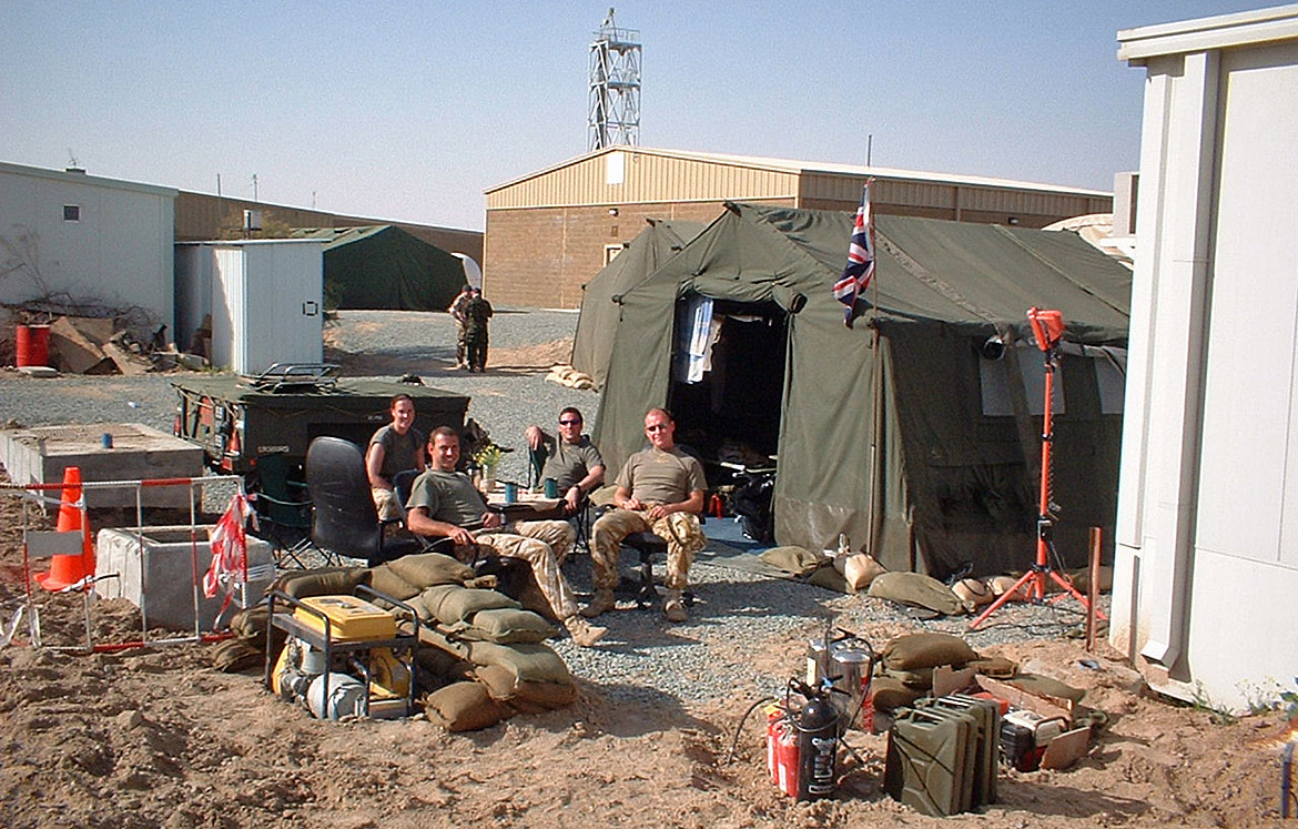 The second was during Operation Telic, 20 years later. In March 2003 we were sent from Kuwait International Airport to Al Jaber Air Base to assist the USAF - we had very limited kit, but acquired 2 x Genny's (110v & 230V) a fridge and a TV, which was attached to the US Cable TV system. Tony Randerson managed to get the wood to build a lean-to , along with a conference table and chairs. We were right next to a USAF Ops Command Post and I also managed to get some extra power from them as well.