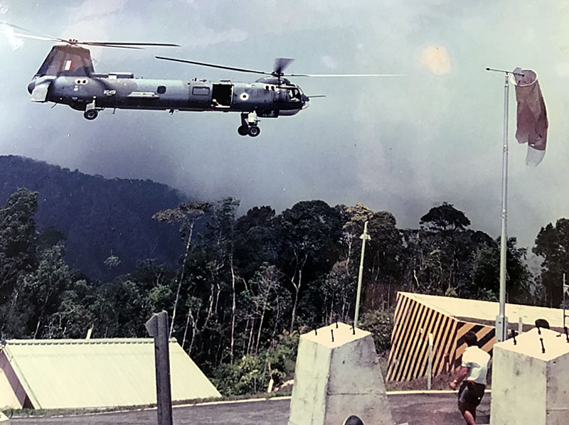 Our operation headquarters was with the Royal Green Jackets at Minden Barracks on Penang Island. I had only ever worked in the secluded area of a SCAF. I could only admire the ingenuity and work ethos of this MAMS team. There was no problem that could not be solved. A great deal of material was airlifted by 66 Squadron Belvedere helicopters. The landing pad at RAF Western Hill was snug to say the least. The attached photos will attest to that.
