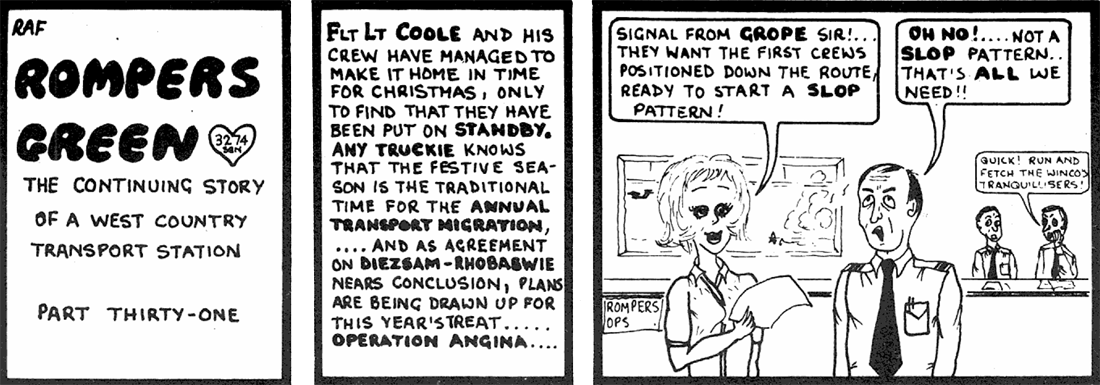 The load was two Land Rovers with trailers. The late Cpl. Bob Turner took one look at the dreaded Britannia freight lift platform (BFLP) and said, "Sod that!" and found a 12,000 lb fork lift we could use. The cargo hold door was, I think, 13ft high and we used that fork lift, two-sixing the load straight into the aircraft body. If anyone from Base Movements was watching they never said a word. Then we re-arranged the seats to give ourselves more leg room and turned one around to make a card table.
