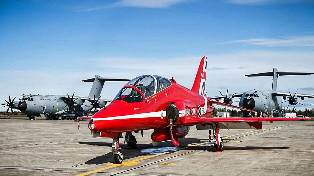 The Red Arrows and their Hawks were supported by Atlas A400M 's during their Maple Hawk display tour