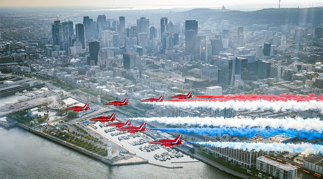 The Red Arrows with the Canadian Forces' Snowbirds over Ottawa