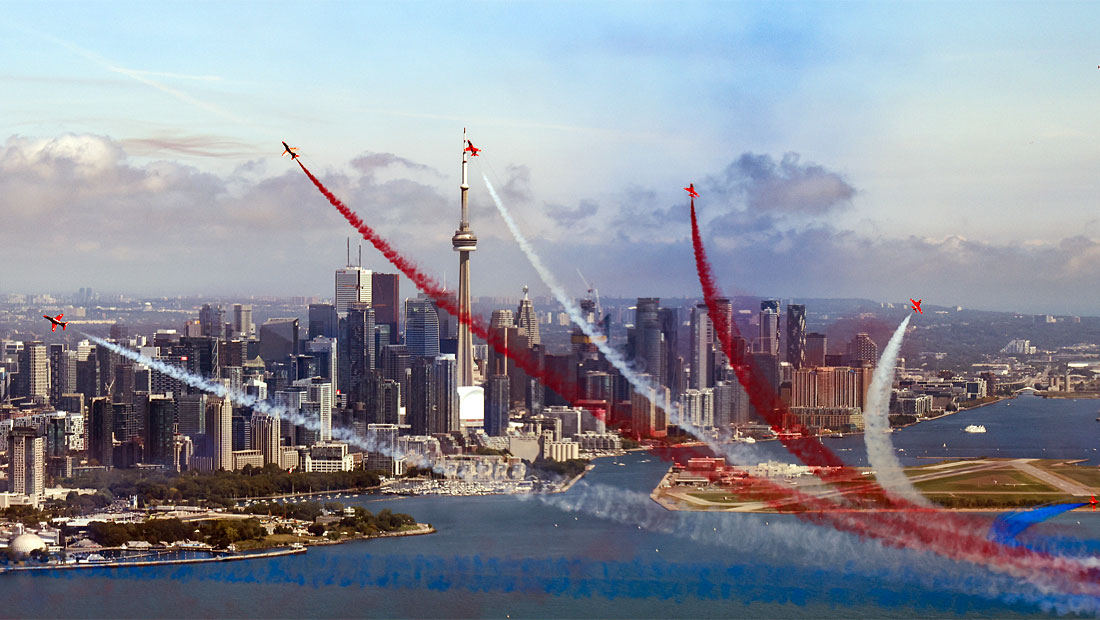 The Red Arrows put on a performance in front of the Canadian National Exhibition in Toronto