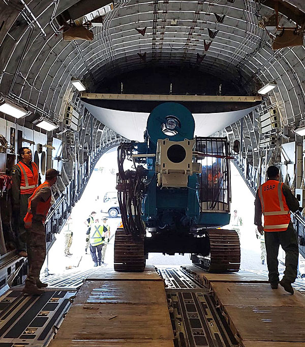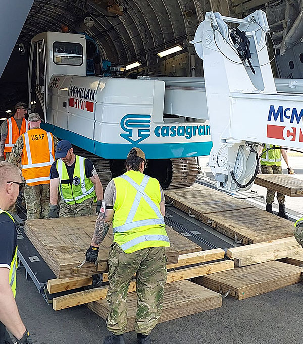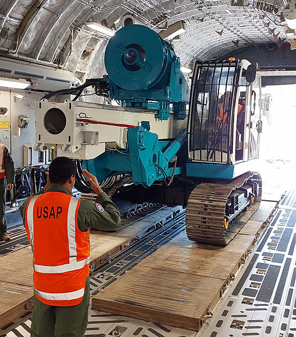76,900 Lb drill rigg for Ant NZ loaded today for Monday's mission, a 33,000 LB T5 overhang crane boom for Tuesday and the 12,000 Lbs drill rigg cali bar (T4 overhang) went last week, 3 x helicopters already gone out too.