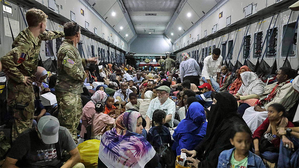 British nationals being evacuated out of Sudan on board an RAF Atlas A400M