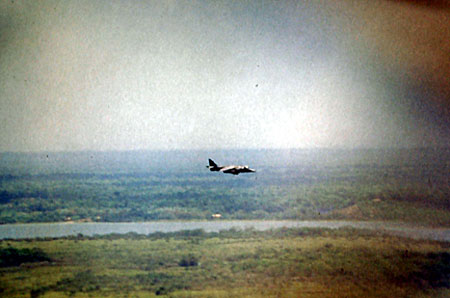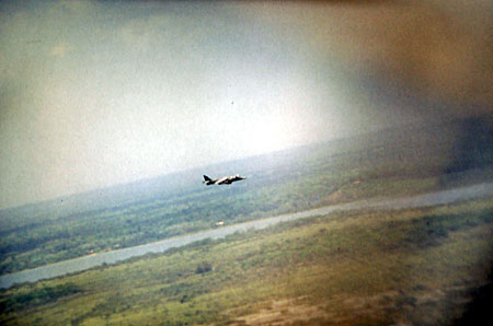 The Orange Walk ranges were on land normally occupied by cattle, so these 2 pics were taken of a Harrier doing SNEB rocket attacks on the range viewed from a teenie-weenie Gazelle trip I did. Great fun clearing the range of animals by low flying to scare them off before the range was used.