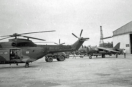 The Puma and Harrier pics at Williamson hangar were taken way before my time out there and are from a sheet of RAF contact prints I found in my draw in the Movs office. The Harrier appears to have 1 Sqn badging so this must have been the initial or early second deployments of the Harriers.