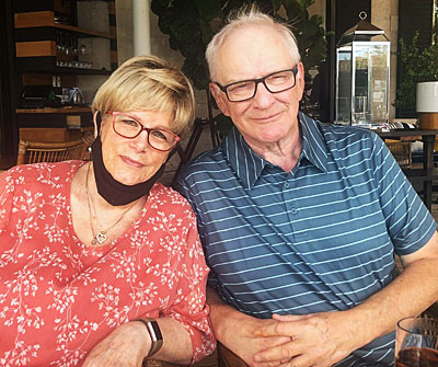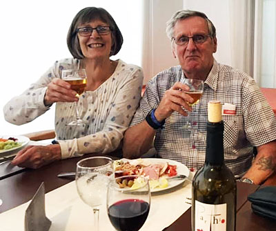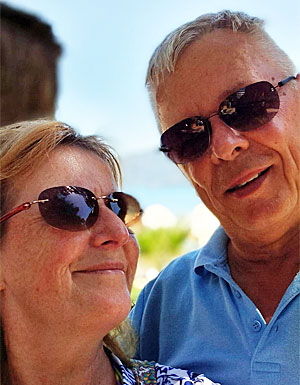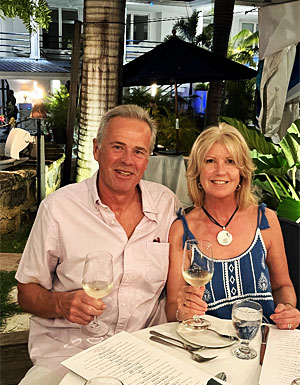 Sue & Mick Bedford - trying hard not get too tipsy (ha!) on a recent vacation