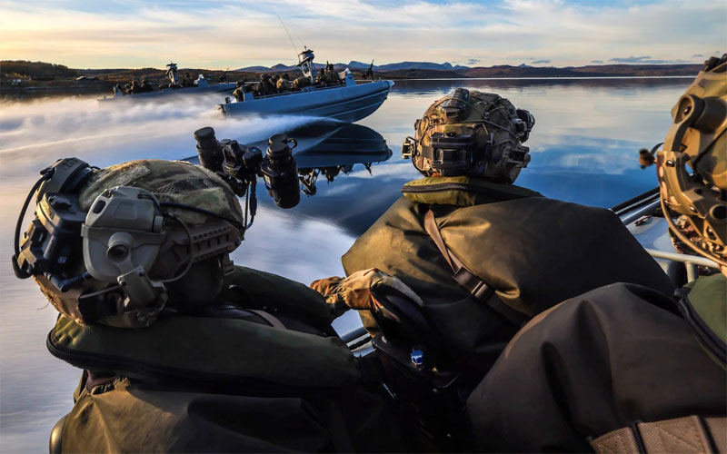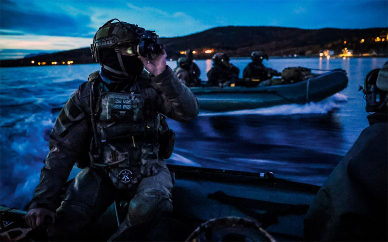 Night Raids Royal Marine Commandos using Raiding Craft in the Norwegian Fjords during Exercise Tarasiss