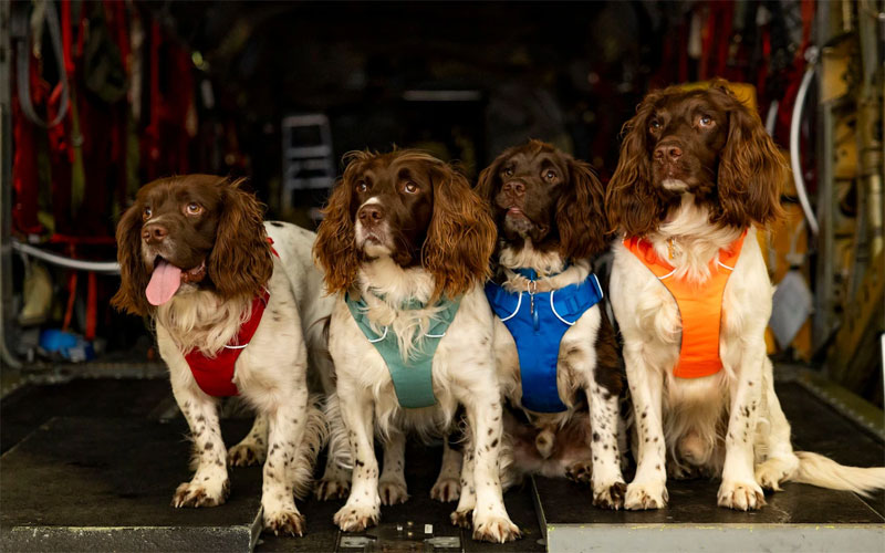 Dogs Having Their Day Kerry Irving’s springer spaniel therapy dogs on an RAF Chinook helicopter on Exercise Kukri Dawn