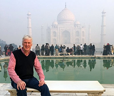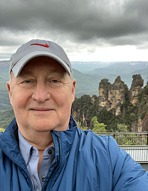 Steve Harpum with the "Three Sisters", at Katoomba, in the Blue Mountains New South Wales, Oz.
