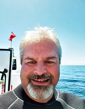 James Pickett just after a dive in much warmer climes