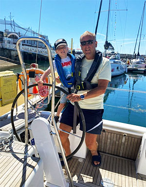 Martin Read with Grandson Harvey in Torquay Harbour. He sails as crew with a charity for the disabled