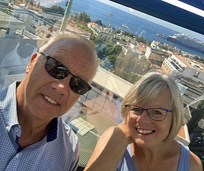 Gordon & Brenda Gray in Civitavecchia during Med cruise on Cunard Queen Anne last August