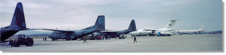 I also remember accompanying a few loads on RAF and Canadian Hercs where we would go on to off-load in about 8 minutes or so! They were quick "hot turn arounds" where as at least one engine was left running. I remember the roller-coaster like rides one would experience while flying high above the ground with the ever present threats of rockets and missile launcher attacks. After descending to 15,000' we would then drop the beast down like there was no tomorrow only to level up and land at breakneck speed to off-load and get airborne just as quickly and at as steep an angle as possible.