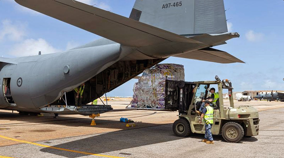 Defence planes have transported more than 20 tonnes of food and supplies from Broome into the isolated town of Derby in Western Australia following a priority request from the WA Department of Fire and Emergency Services. Roads into the town have been cut off by severe flooding that occurred in the aftermath of Ex-Tropical Cyclone Ellie, resulting in food supplies being critically low in the town. Local transport providers in Broome and in Derby worked with Defence crews to load and unload the food supplies throughout the day.