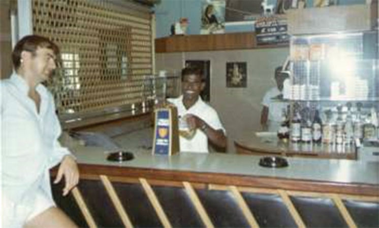 I arrived on RAF Gan, in the Maldives, on 24 Jan '70 and it's fair to say that it was probably one of the best tours I had. I was met off the VC-10 at about 1000 by assorted movers and was whipped away to the VIP lounge at the Blue Lagoon, route hotel, for an early morning beer. Suffice to say, I don't recall many of the names from that day. I woke up next morning in a 4-man room and across the room was the room boy standing staring at a naked Reg Tudor. The other side and in the bed next to me was Bob White (See Pic). I kept in touch with Reg Till he died.
