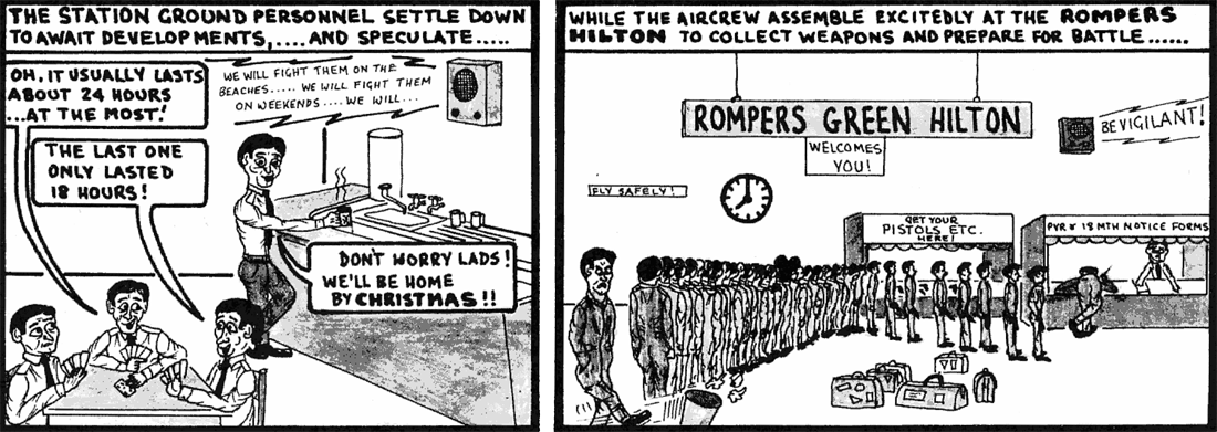 We were issued with a mug and irons and taken for a meal, bloody awful fish and chips, lots of marge jam and bread, after this repast we were taken to wooden huts containing old iron beds 3 biscuits very thin blankets and a straw filled pillow. Next day barbers for a short back and sides then to be issued with uniforms, boots, a complete set of webbing, mess tins and all the necessary kit to make the complete airman. There followed weeks of marching everywhere, polishing everything that did not move and saluting every thing that did. But we finished as the smartest group ever to leave Padgate.
