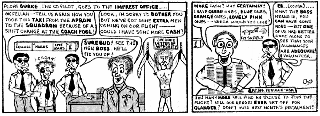 Uneventful flight back to base and the food was absolutely brilliant and appreciated by all. Obviously the co- pilot turned in the bill with what was left of the imprest to our chief acker basher. The latter was aware that I had been on the trip and telephoned me to confirm that this was a genuine and necessary expenditure. Of course said I, at least we made our own coffee, if he had bought 6 coffees, that would have been nearly another £30. The acker basher nearly exploded, but said that he must try and get on the next Bodo trip!