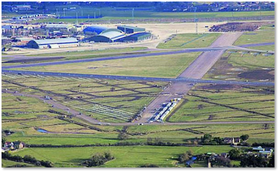 The 3 attached photo’s [at left] show the state of the build when we started operating, the aerial photos clearly show the Main Apron only 1/3 complete and the Plan shows the completed areas in Red, the Aircraft Dispersals, Technical Services Area, ESA, etc, still to be built.