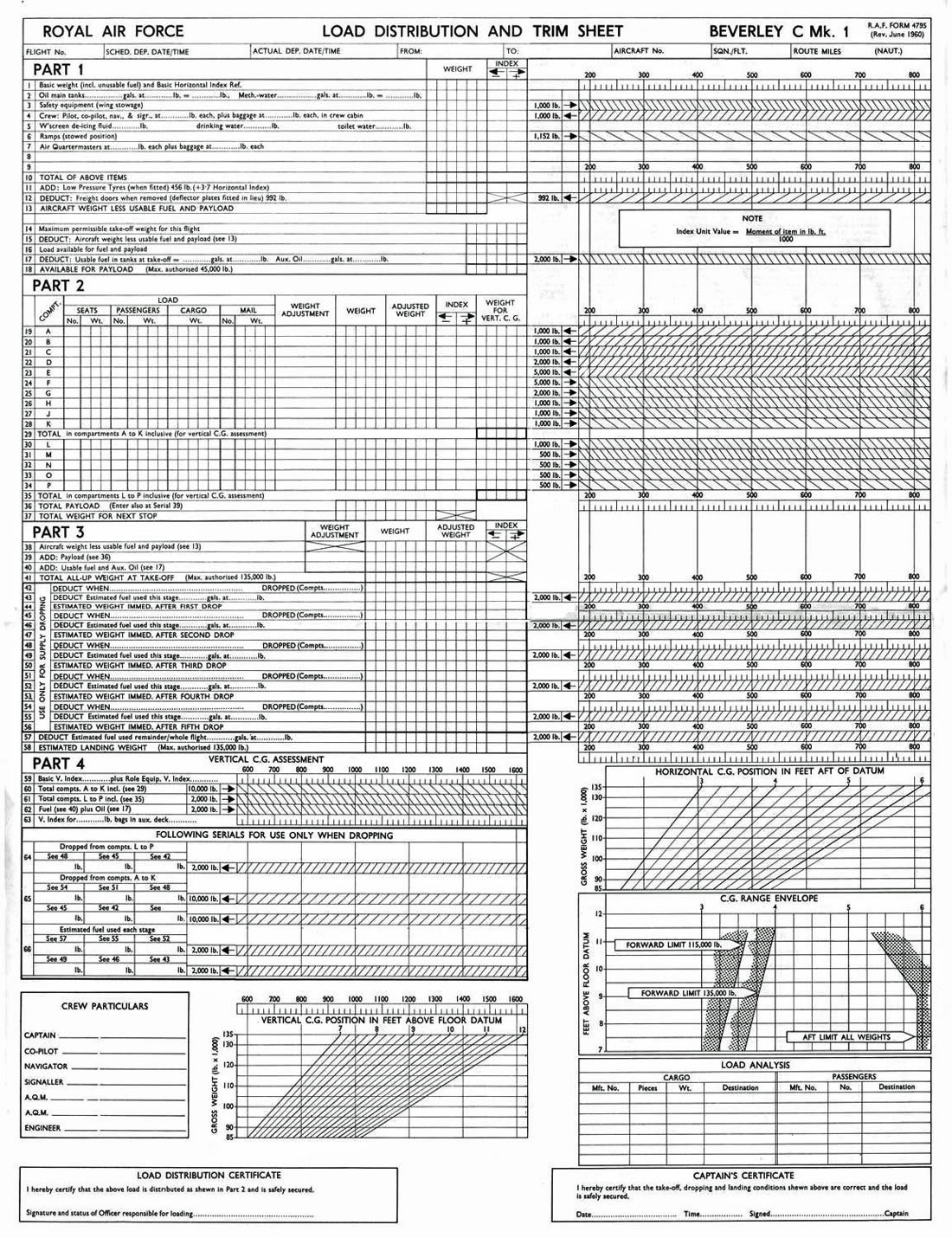 Each aircraft in my day had a separate trim sheet. Remember we had the Argosy, Belfast, Britannia, Hastings, HS-748 Andover, Pembroke, Twin Pioneer, Valetta, Beverley, Comet and VC10. If you’re really old, you might remember the York and Dakota DC3. There are others too that were converted to the Transport/cargo roll all of which required a weight and balance sheet/proforma.