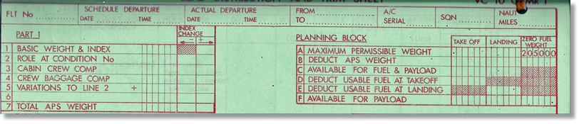 Yes, I remember the Trim Sheet very well! - Even before the Trim Sheet – where we had to calculate the datum point in the nose of the aircraft, to the hold where we were putting the load in, and multiply it to get the moments. This had to be done in every hold, including the crew quarters. Then divide them out to get the mean average, which had to be within two inches of the centre of gravity (I think) of the aircraft.