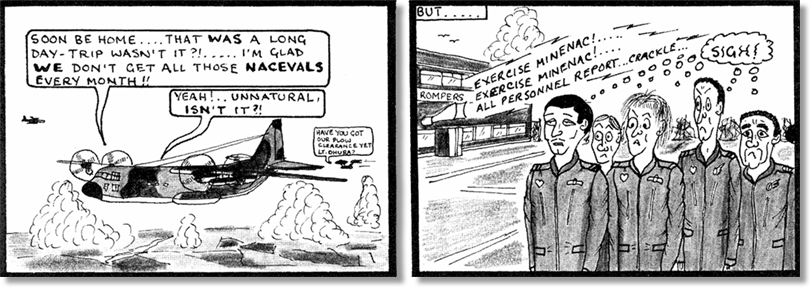 The following morning, the AQM [Air Quarter Master - predecessor to the loadmaster] came in with attitude, to get his trim sheet, but I was running late, due to happenings during the night. He gave me, and all movers in general, a bit of abuse so I told him what had happened and invited him to go away sexually while I finished his sexual trim sheet. I have to say he was most apologetic afterwards and looked like he wished the ground could have opened up to swallow him. He eventually got his trim sheet and scuttled off but was as nice as pie whenever we saw him after that. I did get a raised eyebrow from the DAMO. Upsetting an AQM! Tsk! Tsk!