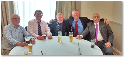 Celebrating Gus's life at the Angel are: Messers Gledhill, Kilpatrick, Heaphy, Holland and Muffett