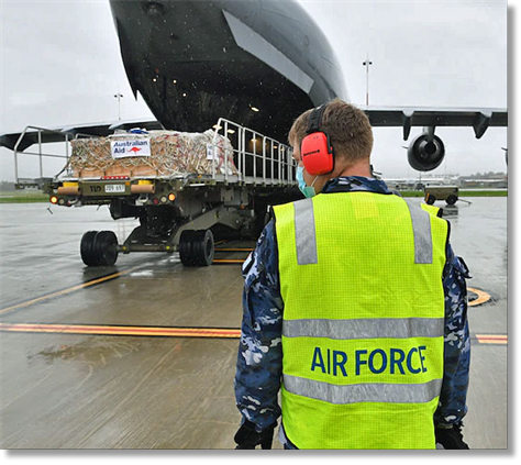 A forward team of AUSMAT health specialists with an emergency vaccine supply has touched down in Papua New Guinea's capital Port Moresby to help local health authorities deal with the spiralling coronavirus crisis there. The flight also delivered three mobile storage units for the vaccines and five community tents.