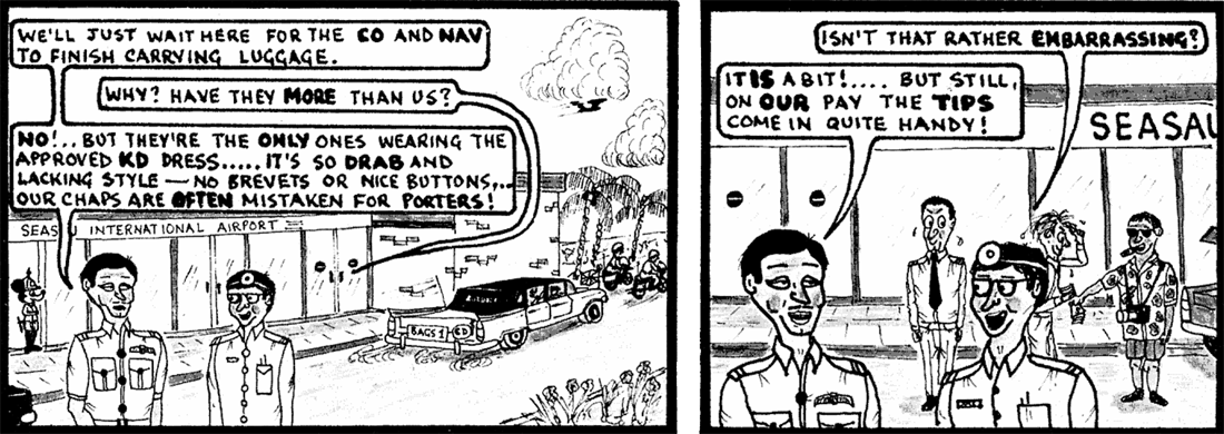 I said, "Why?" Their answer was, "We were told to by our squadron leader." I told them they were not going on that aeroplane; maybe, just maybe, on a later one when their ID’s and authorization had been checked.