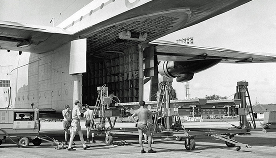 Those of us of the 60’s generation of "humpers and dumpers" were not enamoured with the progress of ACHE and unit load devices of that era. Pallet building was laborious, and the side guidance for the Beverley was payload eliminating ballast. The Britannia Freight Lift Platform (BFLP) and Trianco Transfer Loaders were a rigging nightmare. Reflecting on modern systems, we were positively Flintstone in pre "Elf n safe tea".