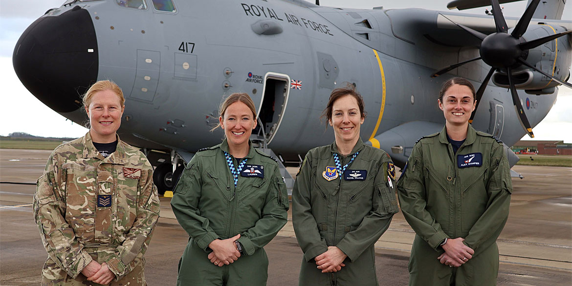 An all-female A400M Atlas crew from RAF Brize Norton have taken part in a historic flypast over the International Bomber Command Centre (IBCC), alongside a Prefect T1 and Eurofighter Typhoon. This was to mark the unveiling of the new Women in War exhibition at the Memorial Spire.
