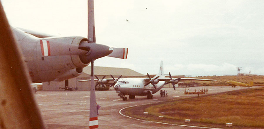 Next morning we boarded the a/c for our return to Lyneham. However the loadmaster advised us not to get our hopes up, as apparently the prop feathering mechanism on a Herc did not take kindly to such a severe cold soak. And so the mild ping on start up did not surprise, announcing that we were u/s also. The next few days were spent dashing between the mess, NAAFI or general office to keep the squadron abreast of our situation.