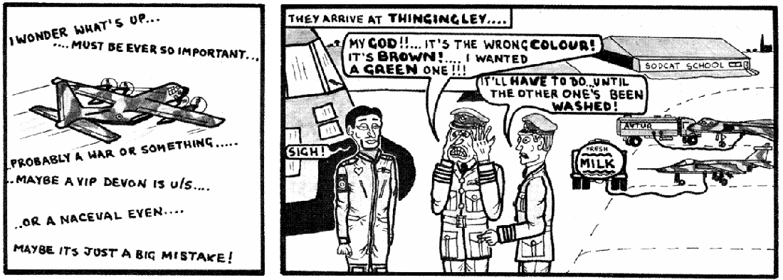 Now you would think that that would have been the end of it. Oh no! About half an hour later the Abingdon Police were on the phone to the Guard Room, relayed to the SDO, asking if we’d seen three Army ORs who had been in an altercation in a pub in Abingdon town centre and were last seen climbing into a taxi and asking to be taken to “that Air Force place”. The SDO advised the Abingdon Police that the three were most probably back on the station but it was a little late to find them tonight and that the matter would indeed “be sorted out in the morning”.