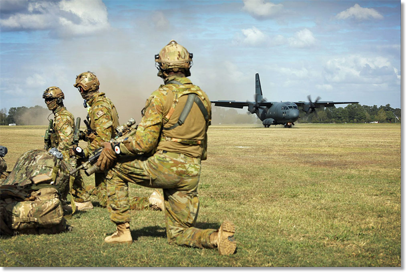 Members of No. 2 Commando Regiment watch a RAAF C-27J Spartan taxi on a grass airstrip at RAAF Base Richmond, during a ceremony to announce completed delivery of the fleet of ten Spartans. In Defence service, the Spartan will provide a flexible and versatile airlifter into frontline airfields that are unsuitable for larger transport aircraft.
