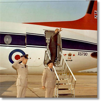 In 1969 whilst I was serving my sentence at RAF El Adem, it was announced that HRH the Duke of Edinburgh would be staging through on a Comet of 216 Sqn after his tour in Africa. Weeks prior to this event things began to happen and I do remember MPBW demolishing the VIP toilet and building a new one, tiles as well! A couple of days before the event an Argosy of 70 Sqn also arrived from Akrotiri full of delicacies, potted plants by the dozen and more. On the day, Keith 'Plonk' Sharpe and myself were nominated for VIP duties and adorned our whites. Three lads from VASF did the same. The Comet arrived and in went the steps, panic as always ensued - was it the right height? Would we get a hole in one? We did and then quickly lined up alongside the bottom of the steps whilst the Duke was met by the Station Commander and other 'Klingons'. The Stn Cdr throughout my tour was a lovely guy, Peter Terry, he finished up as CAS. He was sadly shot in the face by the IRA, but survived the ordeal. Meanwhile, back at ELA, the Duke I assume 'christened' the new toilet. I don't think he touched the crab sandwiches! 90 minutes later he was on his way again. Once he was on board, we removed the steps and waved him goodbye. Sadly all the potted plants flown in from Cyprus had to be returned on an Argosy the next day. Complaints were received later that some of the plants had arrived upside down in their crates. How sad! All this nausea for 90 minutes. As my career progressed I discovered this was not a 'one off!'