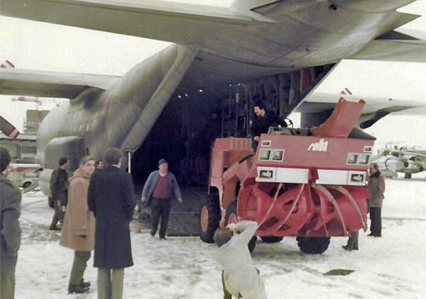 The other was in February 1978. The weather in Scotland was very bad at the time – heavy snow had closed roads and villages were cut off. To help clear the snow, the UK Government had urgently procured a snowplough from Rolba in Switzerland and we were tasked to pick it up and fly it to Scotland.