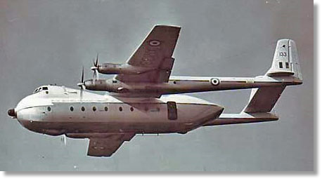Embakazi Airport - the very first Short Belfast on air trials was roped in to help out. There's a civilian G-XXXX registration number on her which cannot be made out. A UKMAMS Landrover is behind the GPU in the foreground.